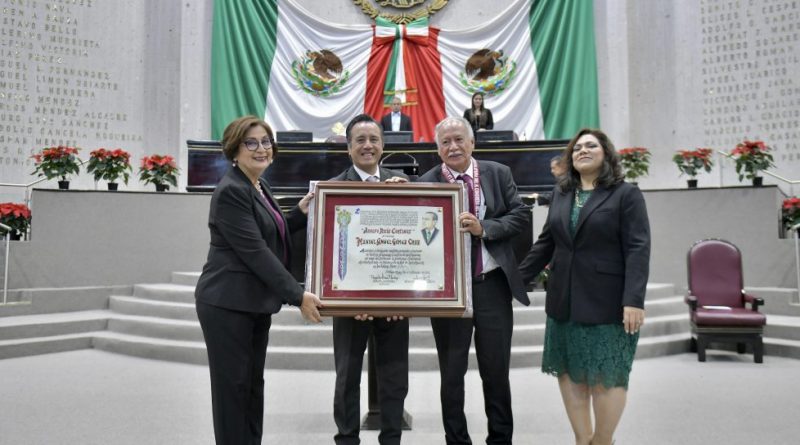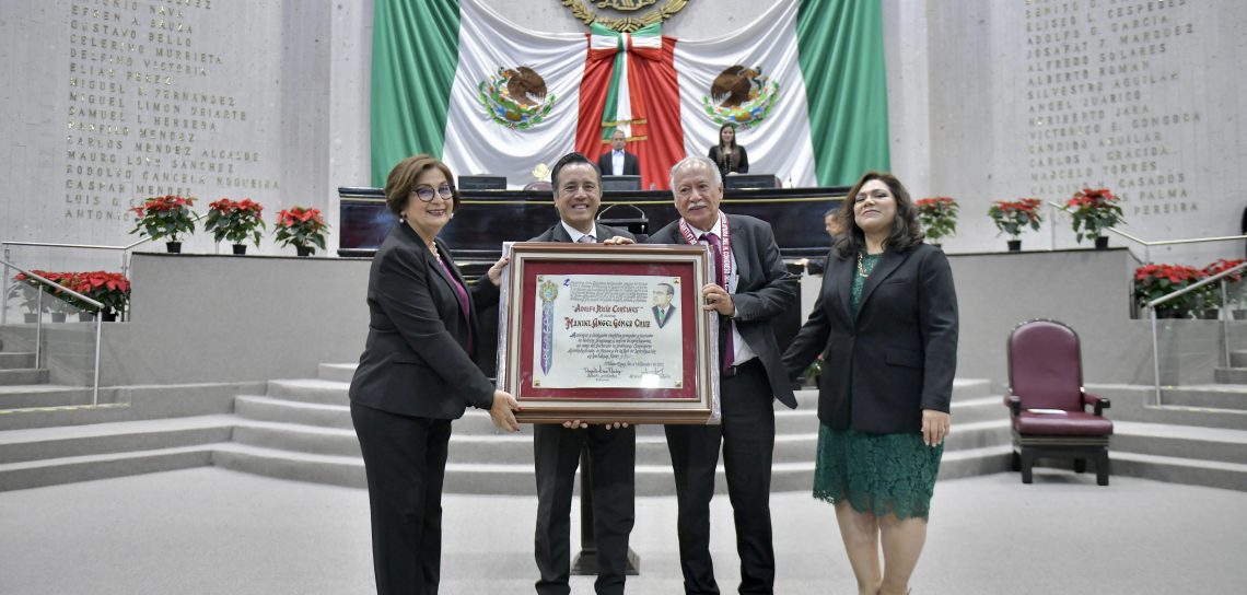 #Veracruz.- En Veracruz reconocemos con mucho honor a quienes cuidan de nuestra salud contra intereses transnacionales, expresó el gobernador Cuitláhuac García Jiménez, tras otorgar la Medalla y Diploma Adolfo Ruiz Cortines a Manuel Ángel Gómez Cruz por su labor, investigación y aportaciones a la agricultura orgánica y el sector productivo del estado.