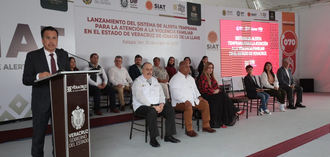 #GobiernoDeVeracruz.- Al poner en marcha la primera fase del Sistema de Alerta Temprana (SIAT) para la Atención a la Violencia Familiar, el gobernador Cuitláhuac García Jiménez destacó la importancia de fortalecer los valores y apostar a la cultura de paz desde el seno del hogar, buscando las causas de las agresiones para mitigarlas y prevenirlas.