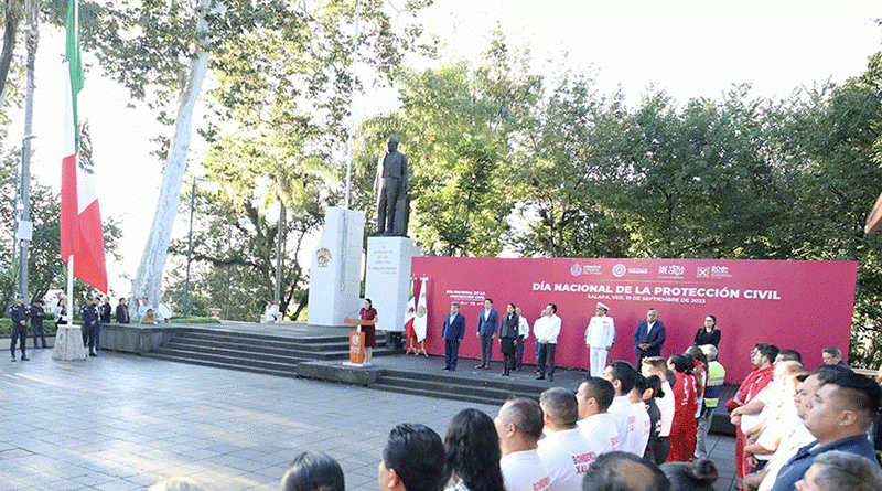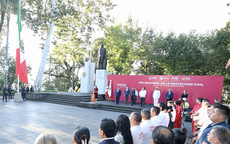 #GobiernoDe Veracruz.- En el Día Nacional de la Protección Civil, el segundo Simulacro Nacional del año registró una participación superior a 400 mil personas en la entidad, “miles de corazones latiendo para construir una sociedad mejor preparada, más empática, ordenada y con mayor bienestar”, afirmó la secretaria de Protección Civil, Guadalupe Osorno Maldonado, durante la conmemoración de los sismos de 1985 y 2017 que encabezó el gobernador Cuitláhuac García Jiménez.