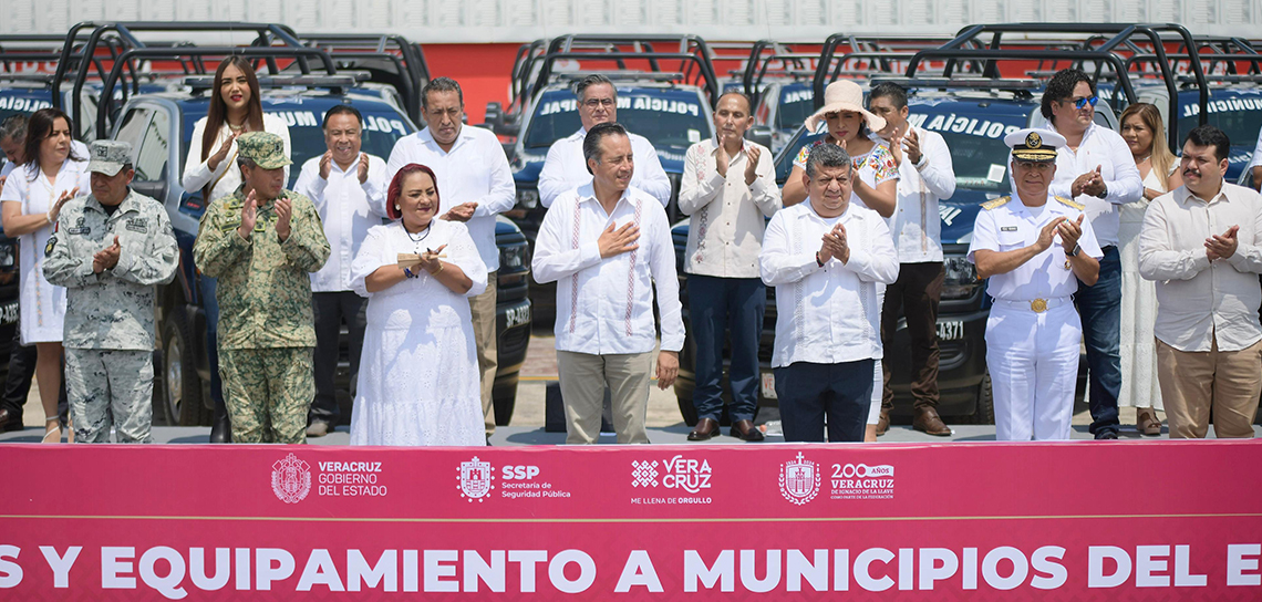 #Veracruz, #Ver.- El Gobierno estatal dotó de 88 patrullas equipadas, además de chalecos balísticos, a 31 municipios de todas las regiones en el marco de la estrategia de protección ciudadana y con recursos del Fondo para el Fortalecimiento de las Instituciones de Seguridad Pública, en una inversión bipartita que supera los 130 millones de pesos.