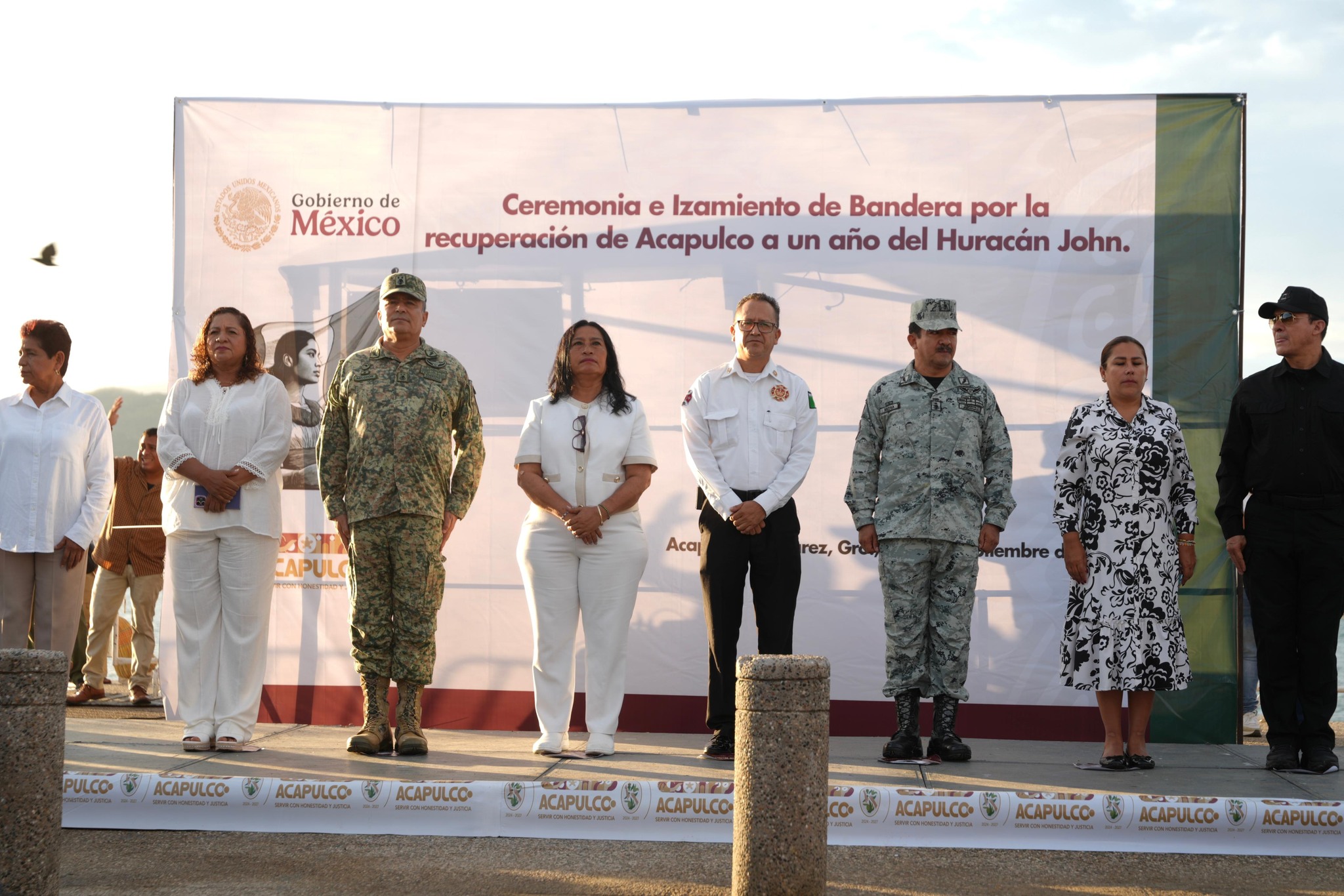 #Acapulco, #Gro.- La alcaldesa de Acapulco, Abelina López, encabezó este 23 de septiembre una conmemoración solemne en honor al primer aniversario del paso del huracán John por el puerto. En un acto cargado de respeto y reflexión, la edil recordó los difíciles momentos que vivió la población acapulqueña hace un año, cuando el fenómeno natural tocó tierra en la Costa Chica y, durante los días siguientes, provocó lluvias históricas en la región.